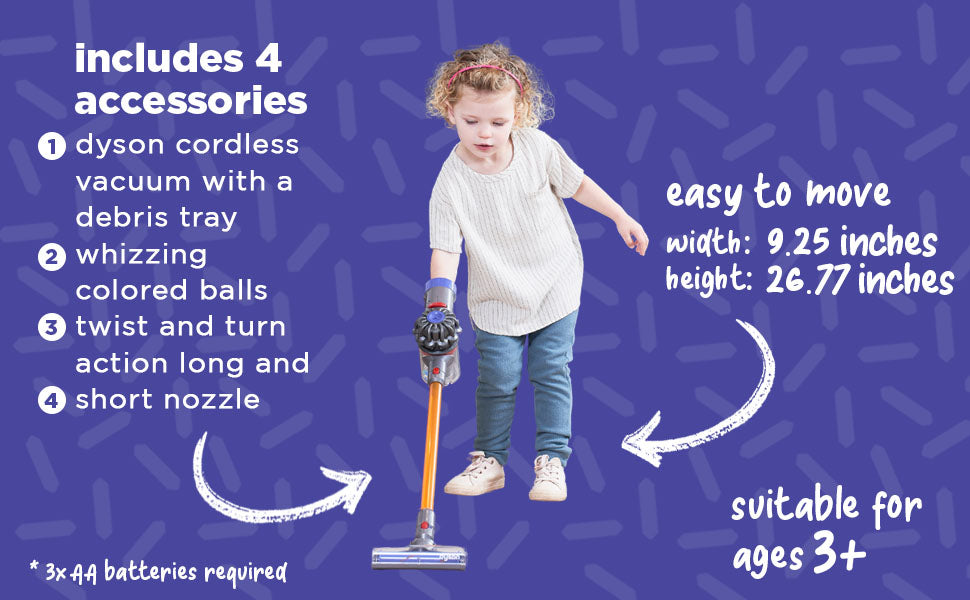 This toy vacuum cleaner mimics the real dyson model down to the last detail, ensuring little ones can get as close to a realistic experience as possible. from the moment they turn the vacuum on, they will be sucked into the excitement that comes from the simulated cyclone action and working suction!